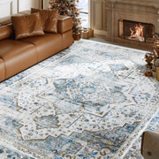 Soft Blue Retro Rug Vintage Distressed Washable Non-Slip Indoor Carpet Soft Blue Retro Rug Vintage Distressed Washable Non-Slip Indoor Carpet