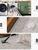 - Ultra-Thin Safety Construction: This washable floral rug glides effortlessly under doors, furniture, and entryways without tripping hazards. Its low-pile design allows robotic vacuums to move freely for hassle-free cleaning.