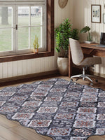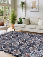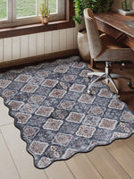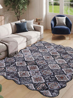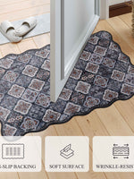 Moroccan Washable Scalloped Rug Black Ultra-Thin Soft Stain Resistant Carpet