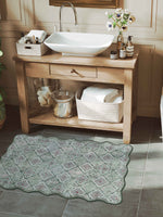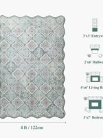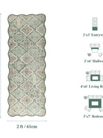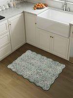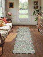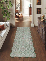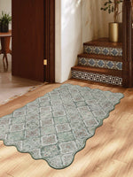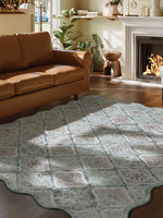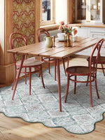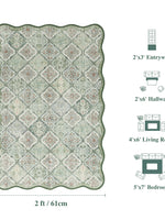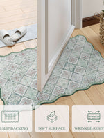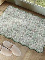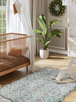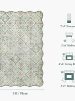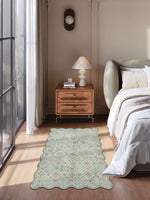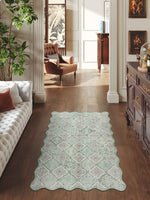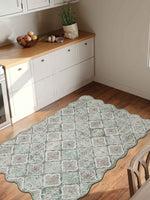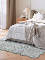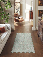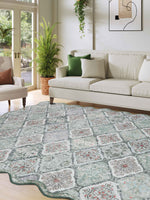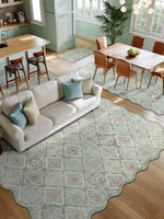 Ultra-Thin Light Green Moroccan Rug Scalloped Soft Washable Indoor Carpet