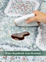 Vintage Rug Green Washable Area Rug Non-Slip Backing Durable Low Pile Mat Vintage Rug Green Washable Area Rug Non-Slip Backing Durable Low Pile Mat