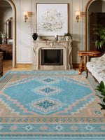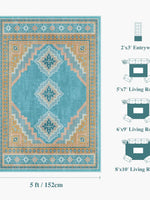 Vintage Soft & Stain Resistant Washable Area Rug Carpets Blue Yellow